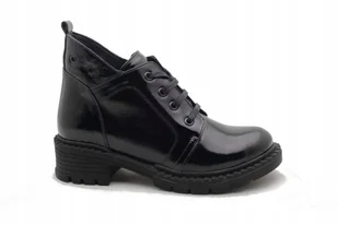 CZARNE BOTKI TRZEWIKI PIAZZA 960237 SKÓRA LAKIEROWANA MODNE R.39