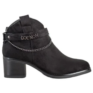 Oryginalne, czarne botki marki VINCEZA to produkt, który przypadnie do gustu kobietom stawiającym na klasyczne rozwiązania modowe, a jednocześnie lubiącym odrobinę nowoczesności. Buty zostały wykonane z ekologicznej skóry zamszowej. Posiadają elementy ozdobne w postaci łańcuszka oraz napisu. Botki są komfortowe. Czarne Botki VINCEZA.
