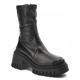 Czarne Botki Workery Carinii B10021 Klocek Platforma Skóra Modne