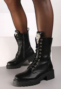 Czarne Botki Workery z Kryształowym Serduszkiem na Szerokim Języku Fesslin