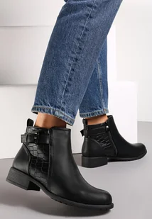 Czarne Botki z Ekoskóry ze Zwierzęcym Motywem i Ozdobną Klamrą Avalone
