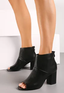 Czarne Botki za Kostkę na Słupku z Otwartym Noskiem Leocadie