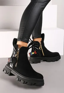 Czarne Botki za Kostkę z Ozdobnym Suwakiem i Taśmą z Napisem Rivilissa