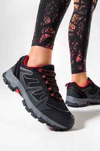 Czarne buty trekkingowe damskie sznurowane z czerwonymi dodatkami softshell Casu B2116-3-36