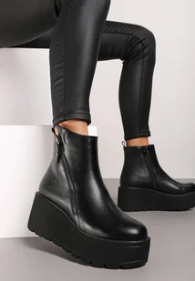 Czarne Casualowe Botki na Koturnie i Platformie z Ekoskóry Wykończone Suwakiem Irilorae