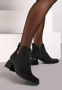 Czarne Klasyczne Botki na Obcasie Ozdobione Metaliczną Wstawką i Wycięciem Loreviana