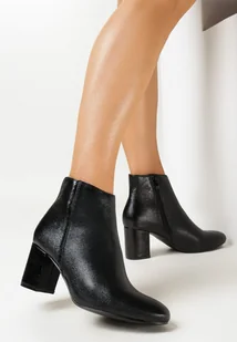 Czarne Metaliczne Botki na Słupku z Imitacji Skóry Sael