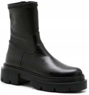 Czarne Modne Botki Workery Carinii B9444 Skóra Płaski Obcas R.36