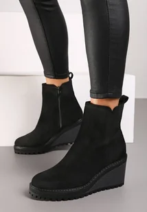 Czarne Ocieplane Botki na Koturnie Tariantte