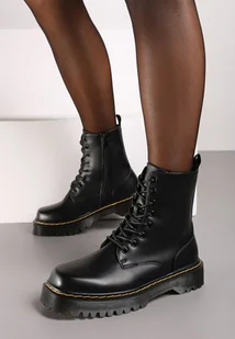 Czarne Ocieplone Botki Workery na Grubej Podeszwie ze Sznurowaniem Cretine