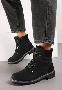 Czarne Płaskie Klasyczne Traperki ze Sznurowaniem Lobanne