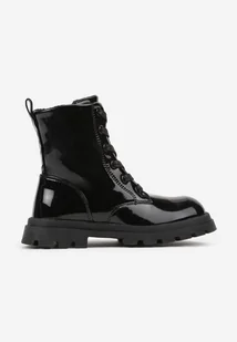 Czarne Płaskie Lakierowane Botki w Stylu Workerów Meristha
