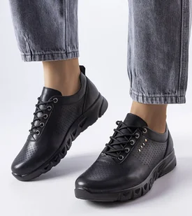 Skórzane półbuty Brodeur na grubszej podeszwie zdobionej żłobieniami. Sznurowanie na okrągłe sznurówki. Modne półbuty Brodeur wraz z wkładką wykonane w całoś...