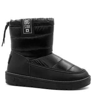 Lekkie i komfortowe pikowane śniegowce wyprodukowano z połączenia materiału syntetycznego i skóry ekologicznej. Podszewkę i wkładkę wykonano z czarnego sztucznego futerka. Noski botków zaokrąglone. W rozmiarze 37 orientacyjna wysokość cholewki mierzona od 3,5 cm podeszwy wynosi około 15 cm.