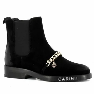 Czarne botki z ozdobnym łańcuszkiemWygodne, stylowe i łatwe w zakładaniu botki mogą być Twoje dzięki projektantom Carinii. Stworzyli czarne botki z ozdobnym łańcuszkiem, które cechują się najwyższym komfortem, mogą być noszone przez kobiety o najdelikatniejszych stopach. Naturalny zamsz, z którego są wykonane zapewnia brak obtarć, a więc nie musisz się martwić o dyskomfort podczas długich spacerów. Ozdobny łańcuszek widoczny od przodu buta nadaje im uroku i sprawia, że ten model ma niebanalny charakter. Czarne botki z ozdobnym łańcuszkiem to propozycja dla każdej kobiety.