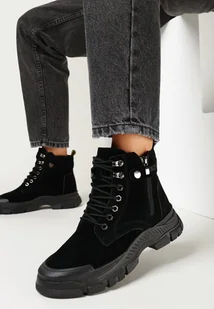Czarne Botki Traperki na Grubej Podeszwie Beanika