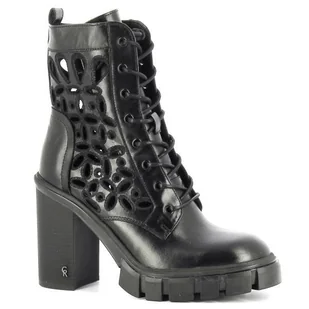 CZARNE SKÓRZANE AŻUROWE TRZEWIKI DAMSKIE NA OBCASIE