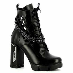 CZARNE SKÓRZANE AŻUROWE TRZEWIKI DAMSKIE NA SŁUPKU Z ŁAŃCUCHEM
