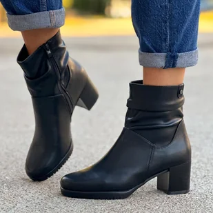Czarne botki damskie: są pełnowartościowe w I gatunku są starannie wykonane oraz odznaczają się wysoką trwałością wnętrze i wkładka jest lekko ocieplone maja elastyczną podeszwę obcas: 6. 2 cm, spód: 1. 5 cm Kolor: Czarny GWARANCJA na 12 miesięcy