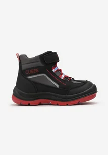 Czarno-Czerwone Botki Zapinana na Rzep z Odblaskowymi Elementami na Grubej Podeszwie Gaiantha
