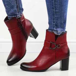 Czerwone botki damskie na słupku na jesień oraz zimę
