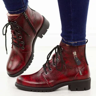 to idealny wybór na chłodną jesień oraz zimę, łączący elegancję, funkcjonalność i niezawodny komfort. Wykonane z wysokiej jakości skóry naturalnej, gwarantują trwałość, odporność na codzienne użytkowanie oraz doskonałe dopasowanie do stopy. Model ten wyróżnia się wyjątkowym połączeniem klasyki i praktyczności botki zapinane na suwak oraz dodatkowo sznurowane pozwalają na idealne dopasowanie i ułatwiają zakładanie. W bocznej części cholewki znajduje się ozdobny suwak, który dodaje całości eleganckiego charakteru. Wnętrze butów zostało ocieplone miękkim kożus