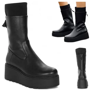 Botki damskie ze Skóry wysokie wsuwane z zamkiem na platformie Maciejka Czarne 40 ___________Modna linia Maciejki®___________ Zapewnij sobie elegancję bez ko...