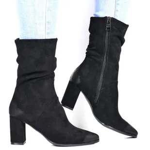 Damskie Botki Na Obcasie Słupku Vinceza 58146 Czarne Zamszowe
