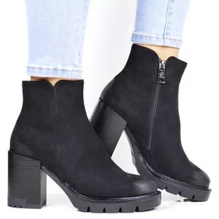 Damskie Botki Na Słupku Klocku Vinceza 58102 Czarne Zamszowe