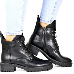 Botki na płaskiej podeszwie to doskonały wybór na chłodną jesień i zimę. Zapinanie jest na zamek oraz sznurowanie, dzięki któremu można dopasować je do stopy...