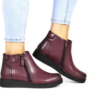 Damskie Botki Skórzane na Koturnie Sergio Leone 25348 Bordowe
