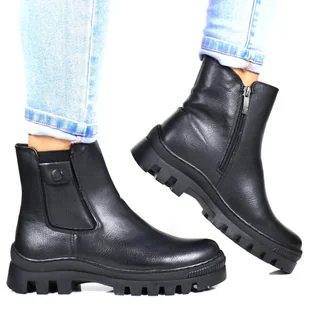Damskie Botki Trapery Z Kieszonką Ocieplane Potocki 12167 Czarne Licowe