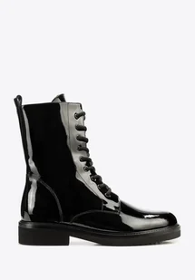 Lakierowane skórzane botki damskie – elegancja z włoskim wyczuciem stylu Odkryj blask lakierowanej skóry w klasycznym fasonie, który zyskuje wyjątkowy charakter dzięki nowoczesnemu wykończeniu. Te damskie botki, wykonane z wysokiej jakości skóry naturalnej, łączą funkcjonalność z wyrafinowaną estetyką. Sznurowanie i suwak po wewnętrznej stronie pozwalają na precyzyjne dopasowanie do stopy, a migdałowy nosek dodaje sylwetce lekkości i elegancji. Pętelka z tyłu nie tylko ułatwia zakładanie, ale też stanowi modny detal, który przyciąga spojrzenia. Dla kogo? Jeśli cenisz klasykę w nowoczesnym wydaniu i chcesz, by codzienne buty były nie tylko wygodne, ale też stylowe – ten model będzie idealnym wyborem.