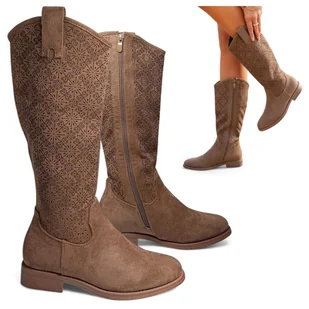 Damskie Kowbojki Ażurowe Kozaki Zamszowe Jesienne Eleganckie Brąz Barski 37 - S.Barski