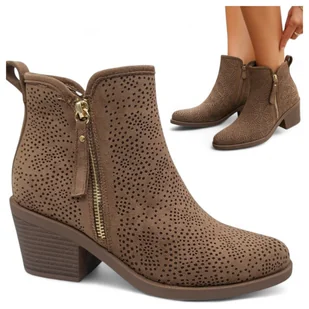 Damskie Kowbojki na Obcasie Botki Ażurowe Zamszowe Jesienne Brąz Barski 40 - S.Barski
