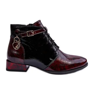 Damskie Skórzane Botki Trzewiki Maciejka 5743A-23 Bordowe czerwone.