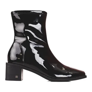 Dopasowane botki damskie ze lakierowane skóry ekologicznej Vinceza czarne