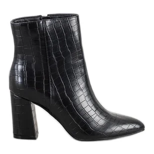 Klasyczne botki z ociepleniem w środku, dzięki któremu idealnie nadają się na chłodniejsze dni. Z zewnątrz buty pokryte są tworzywem imitującym skórę naturalną. Cała powierzchnia cholewki wraz z szerokim obcasem ma teksturę podobną do skóry krokodyla. Sięgający za kostkę kołnierz wyposażony jest z boku w zamek. Goodin Botki W Szpic Snake Print czarne.