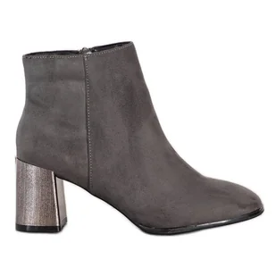 Przedstawiamy państwu wyjątkowe buty, botki z ozdobnym obcasem w kolorze szarym. Posiadają ciekawy krój, przez co podkreślą nawet najtrudniejsze stylizacje. Stworzone z wysokiej jakości skóry ekologicznej, będą służyć wiele lat. Przeznaczone dla kobiet ceniących sobie wygodę, styl i wysoką jakość produktu. Goodin Botki Z Odzobnym Obcasem szare.