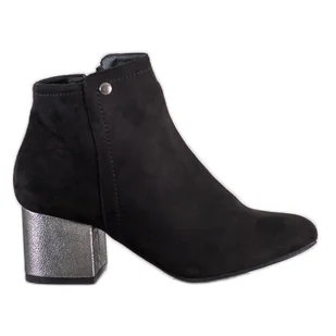 Goodin Botki wykonane z zamszu w kolorze czarnym stanowią klasyczną propozycję producenta. Przedstawiony model został uzupełniony o srebrny detal na obcasie, który stanowi element nowoczesny w obuwiu. . Buty nie tylko świetnie uzupełnią niejedną stylizację, lecz także - dzięki połyskowi - wyróżnią się w tłumie. Goodin Czarne Botki Z Zamszu. Sprawdź na butymodne.