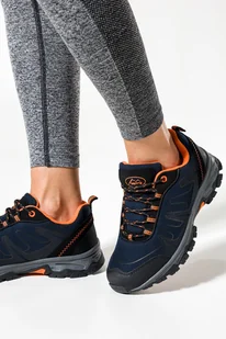 Granatowe buty trekkingowe damskie sznurowane z pomarańczowymi dodatkami softshell Casu B2116-5-39