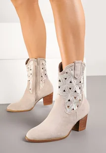 Jasnobeżowe Botki Vices na Obcasie w Stylu Kowbojek Ozdobione Ażurowym Wzorem Zelori