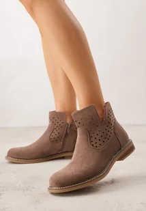 Jasnobrązowe Ażurowe Botki na Płaskiej Podeszwie ze Skórzaną Wkładką Terilara