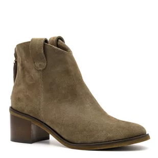 Welurowe botki na obcasie o kształcie klocka. Botki wykonane są z naturalnej skóry welurowej i mają lekko zaokrąglone noski. W skórzanej cholewce na pięcie jest wszyty zamek ułatwiający wkładanie butów. Buty są stabilne i wygodne. Optymalna wysokość 5 centymetrowego obcasa pozwala na swobodne chodzenie w butach przez cały dzień.