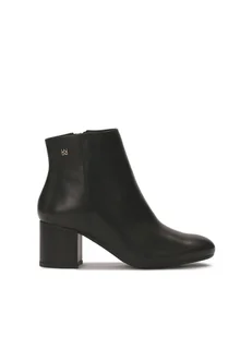 Czarne botki na słupku to kwintesencja elegancji i prostoty, idealnie pasują do kobiet ceniących sobie wyrafinowany minimalizm. Wyprodukowane z najwyższej jakości skóry naturalnej są doskonałym przykładem harmonii pomiędzy komfortem a stylem. Szeroki niewysoki obcas zapewnia stabilność i wygodę podczas chodzenia, jednocześnie dodając subtelnego podniesienia, które sprawia, że sylwetka wydaje się smuklejsza. Botki te wyposażone są w dyskretny suwak z boku, który ułatwia zakładanie i zdejmowanie butów. Czarna kolorystyka sprawia, że są uniwersalnym dodatkiem do wielu stylizacji, pasują zarówno do formalnych, jak i bardziej casualowych outfitów.