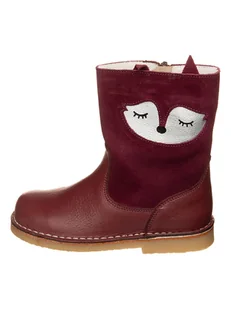 kmins Skórzane botki zimowe w kolorze ciemnoczerwonym