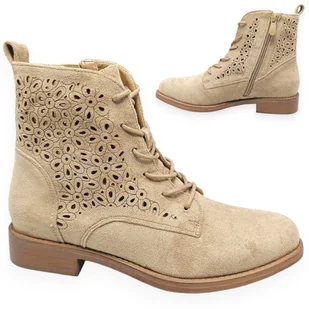 Kowbojki damskie botki za kostkę wiązane zamszowe wygodne S.Barski HY42-136 Beżowe 37 Wybierając półbuty S.Barski, zyskujesz pewność lekkiego kroku i wsparc...