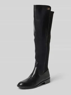Kozaki za kolano damskie Steve Madden;Mieszanka materiałów;Zaokrąglony krój;Model ‘Cursion’;Aplikacja z logo;Gładka podeszwa;Wysokość obcasa w rozmiarze 40: 4 cm;Wysokość cholewki w rozmiarze 40: 48 cm;Szerokość cholewki w rozmiarze 40: 12 cm