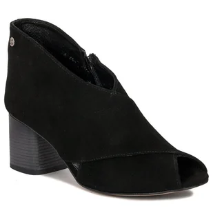 Maciejka Botki damskie na słupku welurowe czarne Oryginalne, a zarazem wygodne botki damskie polskiej marki Maciejka to idealna propozycja dla wielbicielek etnicznego i kobiecego stylu. Materiały wysokiej jakości, które zostały użyte do produkcji tego obuwia gwarantują długotrwałe użytkowanie. Cholewka wykonana jest z naturalnej welurowej skóry w kolorze czarnym. Prezentowane obuwie posiada zapięcie na zamek po wewnętrznej stronie cholewki, dzięki czemu z łatwością można je ściągnąć i ponownie założyć. Wnętrze buta oraz wkładka wykonane zostały ze skóry naturalnej, dzięki czemu komfort chodzenia utrzymany jest na wysokim poziomie.