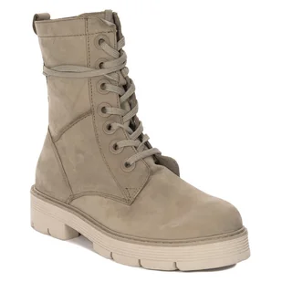 Marco Tozzi Botki damskie skórzane Taupe Nubuk Marco Tozzi to bardzo dobrze znana marka obuwnicza, której produkty wyróżniają się najwyższą jakością wykonania oraz efektownym, nowoczesnym wzornictwem. Nowa propozycja tej marki na sezon jesień-zima to piękne, oryginalne, botki damskie. Miękka cholewka wykonana z naturalnej skóry nubukowej w kolorze beżowym "taupe" i ma wysokość wysokości 17. 5 cm idealnie chroni przed niekorzystnymi warunkami atmosferycznymi. Umieszczony po wewnętrznej stronie zamek ułatwia szybką i łatwą zmianę obuwia.